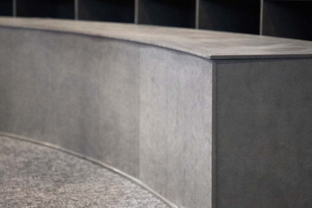 DEBO® UltraCore Panel is available with through-dyed colored cores. The wood fibers are dyed and bonded with resin, creating a rich, uniform color throughout. This ensures exposed edges match the surface perfectly, removing the need for edge banding.